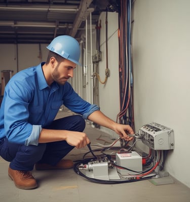 Instalação e manutenção de sistemas elétricos e ar condicionado.